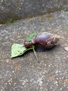 On the garden path around the hotel grounds, we saw lovely flowers and vegetable gardens and a big snail and the dogs that live at the hotel – three golden retrievers named Lily, Lexi, and Cooper. After the garden walk, Daniel decided to do some reading outside, but I was starting to feel a little nauseous, so I stayed in the room to start writing my travelogue and charge my phone. The plan was to leave around 11am for a hike.