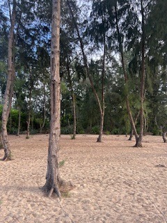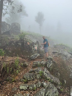 Finally, the really jungly part did seem to end. We entered a stretch of the path that was more typical “woodland” vibes, with plenty of elbow room between human and plant. By this point, Aparna was pretty much 10/10 furious at Etosha, who not only hadn’t gotten any leeches himself, but also had filmed us as we three frantically fought the tiny beasts. Aparna hypothesized that Etosha, who was leading the way, was essentially alerting the leeches to the presence of humans, then by the time the rest of us followed, they were primed and ready to attack us.