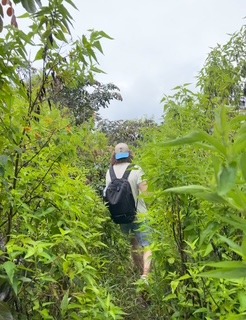After a steep but achievable ascension, we were let out into another muddy, jungly stretch of hike, which made Aparna 11/10 furious, as Etosha had strongly implied that no muddy jungly stretches would again occur. Here, the foliage was even taller and the trail was even narrower than before, but luckily, it didn’t seem like there were leeches. After moving as fast as we could through what was essentially the Sri Lankan jungle version of a cornfield, we emerged back into open air.