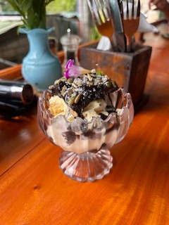 I woke up this morning feeling better, but not amazing. Daniel brought me buttered toast and tea, and he did most of the packing in preparation for leaving that morning for our next destination. We were heading from Bandarawela to the east coast of the island, where we’ll be for the next couple of days. On the way, we stopped in a town called Ella, which is very touristy, for a brownie sundae that one of Daniel’s friends had recommended to us before we came on the trip. My appetite was still quite suppressed, but I was able to stomach a little vanilla ice cream and, as per Aparna’s suggestion for a tummy ache solution, some black tea with lime. In Ella, Daniel bought me a large teddy bear to use as a car pillow, and I did indeed sleep for most of the 3+ hour drive to the east, interrupted by a few quick stops at a convenience store and a restaurant where I was able to stomach a small portion of noodles.